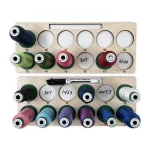 Just place the spools in the numbered order. For repeat colors, write the thread color number on the dry erase circle so you don’t skip a color. You’ll receive two 12.5” x 5.25” trays and one dry erase marker.
